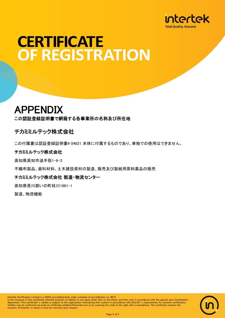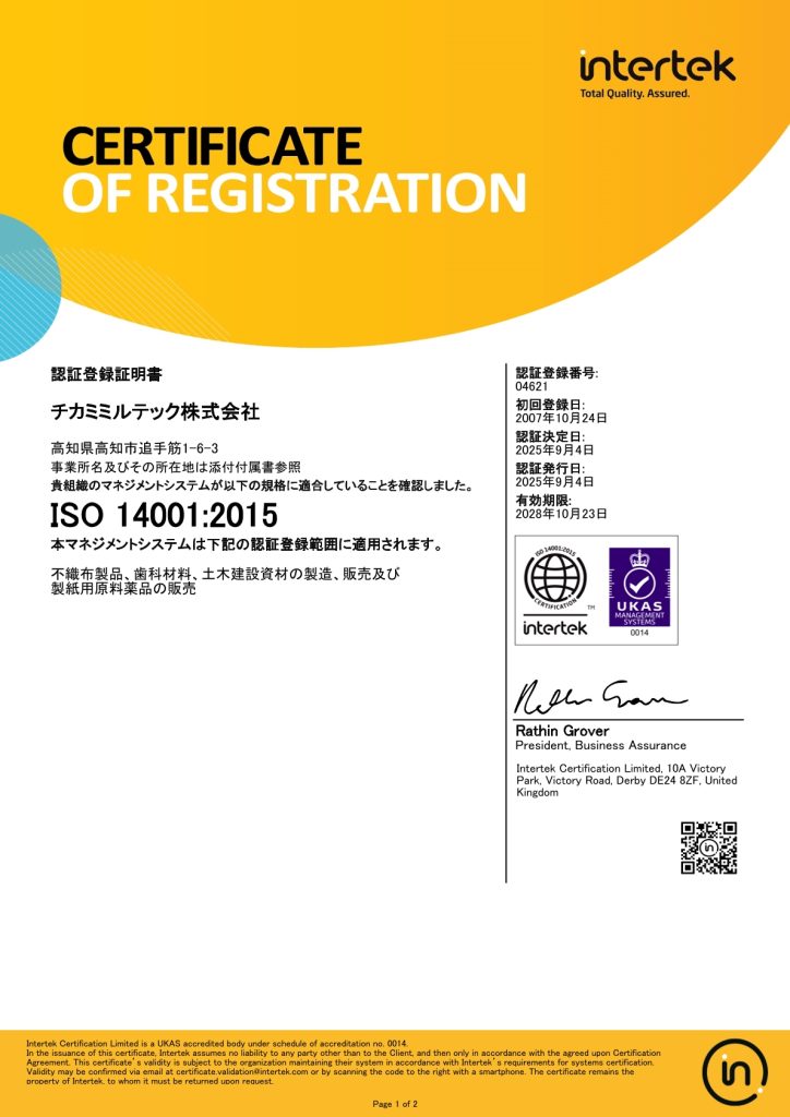 チカミミルテック株式会社は、不織布製品、歯科材料、土木建設資材の製造、