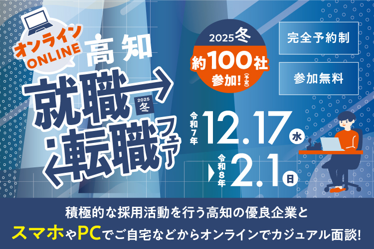 【12/17~2/1】「オンライン高知就職・転職フェア2025冬」に出展します